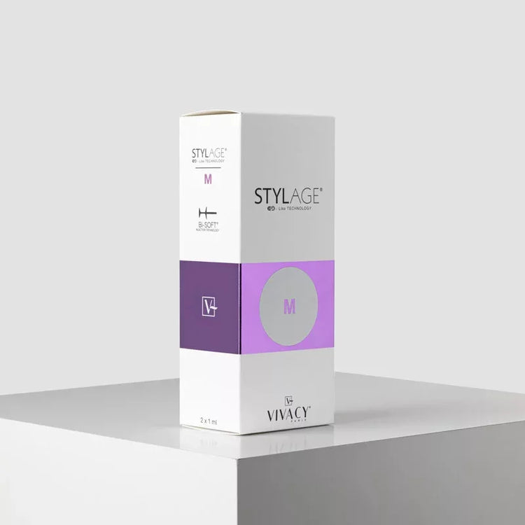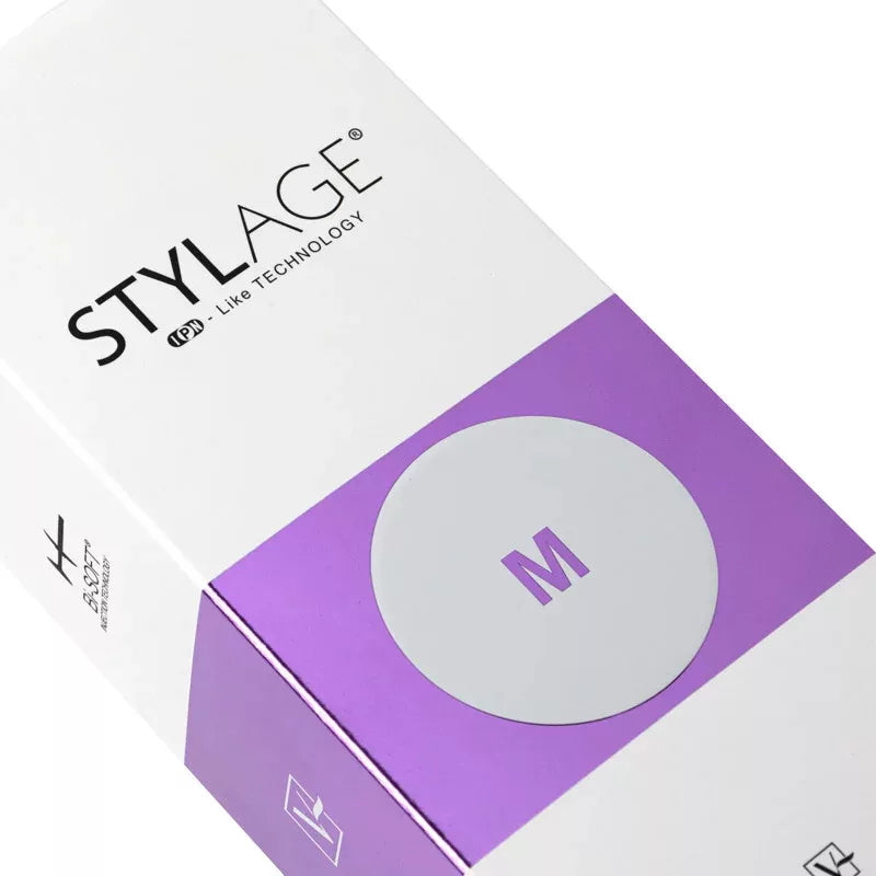 A STYLAGE® M azonnal korrigálja a felületes vonalakat és ráncokat. A termék ideális kisebb nasolabialis redők feltöltésére, felületes ráncok és megereszkedett állredők kezelésére, hogy simává és feszessé tegye őket, marionett vonalakat, orrpúp csökkentését vagy orrhegy emelését és a fülcimpák formálását. A STYLAGE® M a kézfiatalításra is használható, beleértve a kézháttérben lévő volumencsökkentést is.